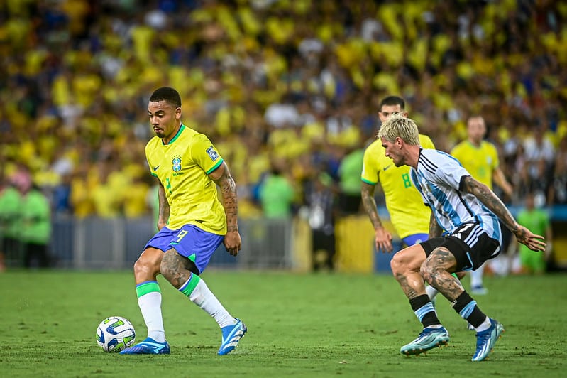 A situação da seleção se complicou de vez aos 36 minutos, quando Joelinton foi expulso após dividir bola com De Paul e o juiz entender que o brasileiro acertou o argentino no rosto em marcação muito contestada. A Seleção conseguiu segurar o jogo com um a menos pelo restante do tempo, impedindo que a Argentina aumentasse o placar.