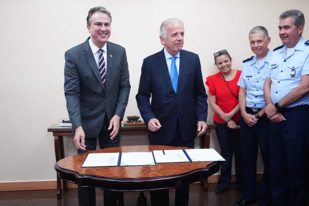 O governador Elmano de Freitas assinou, na noite desta terça-feira (28), junto ao ministro da Educação, Camilo Santana; o ministro da Defesa, José Múcio Monteiro Filho; e o Comandante da Aeronáutica, Marcelo Kanitz Damasceno; o acordo de cooperação técnica para a implantação de campus do Instituto Tecnológico de Aeronáutica (ITA) no Ceará.