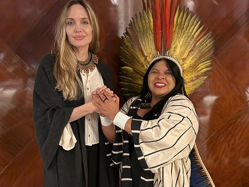 A atriz e ativista Angelina Jolie teve uma reunião com a ministra dos Povos Indígenas, Sônia Guajajara no fim da semana em São Paulo.