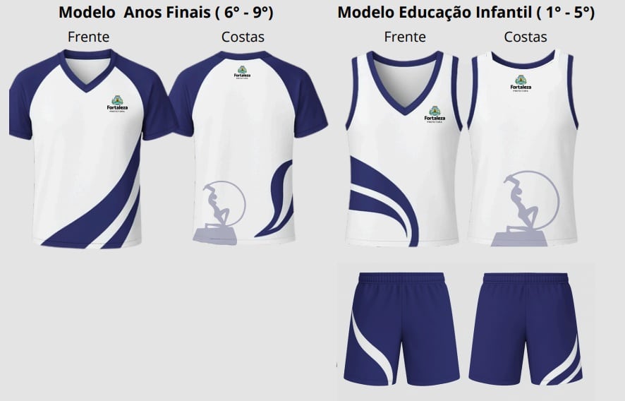 Serão escolhidos fardamentos para: Educação Infantil, Ensino Fundamental (Anos Iniciais), Ensino Fundamental (Anos Finais e Educação de Jovens e Adultos) e um modelo para Educação Física.