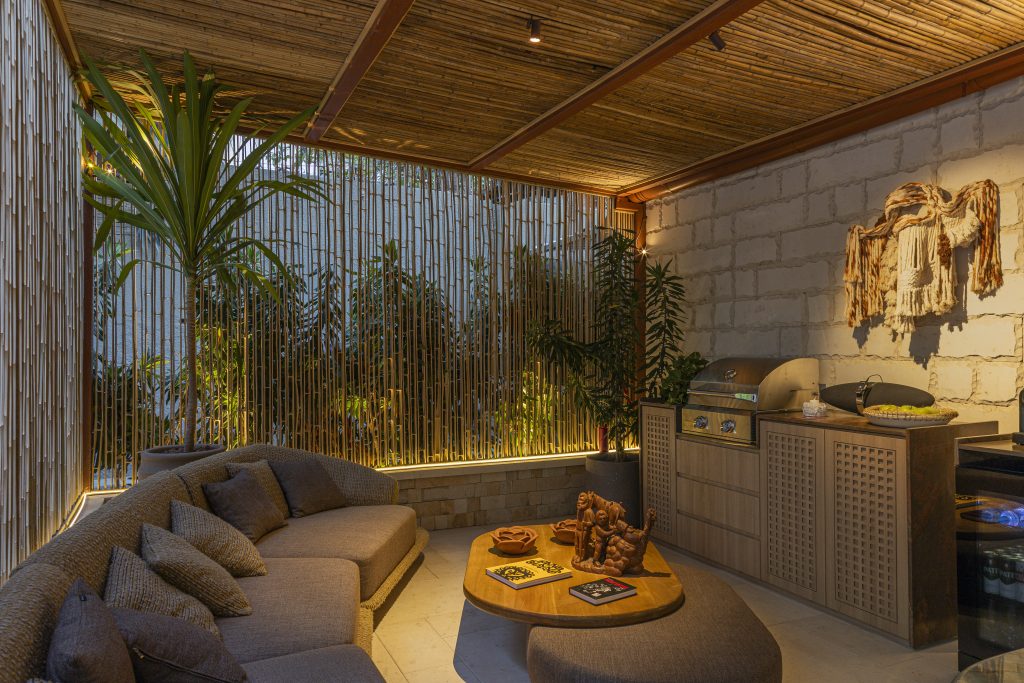 Já no Alpendre da Casa, projeto de Fabrício Pereira e Roberta Pereira, o bambu evoca a tradição das varandas nordestinas, espaços de convivência, sombra e diálogo com o entorno. Nesse ambiente, o material promove fluidez entre o interior e o exterior, traduzindo a hospitalidade cearense em um gesto arquitetônico contemporâneo.