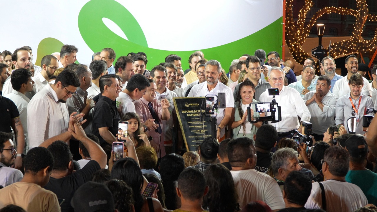 Na tarde da quarta-feira (26), o prefeito de Fortaleza Evandro Leitão (PT) e o governador Elmano de Freitas (PT) realizaram a entrega da reforma da Praça do Ferreira, no Centro de Fortaleza. A intervenção, que foi uma promessa de campanha de Evandro Leitão, incluiu a construção de novos quiosques, banheiros públicos acessíveis, reforma geral do piso em pedra portuguesa, melhorias na acessibilidade, nova iluminação, fonte interativa, dentre outras intervenções.
