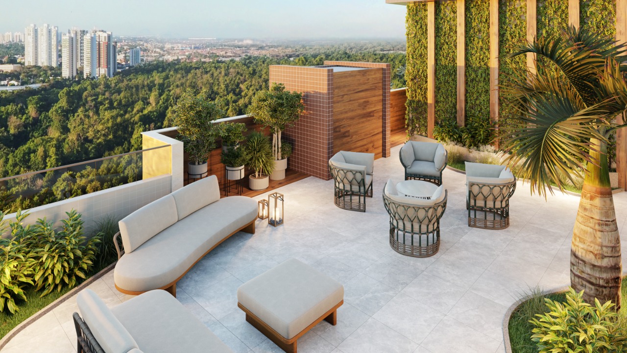 A estrutura de lazer e convivência também se destaca. O condomínio oferece piscina semiolímpica, spa com sauna e hidromassagem, espaço para beach tennis, coworking, entre outras comodidades que ampliam a experiência dos moradores. No topo de cada torre, o Sky Garden proporciona uma vista privilegiada para o Parque do Cocó, considerado o maior parque urbano das regiões Norte e Nordeste.