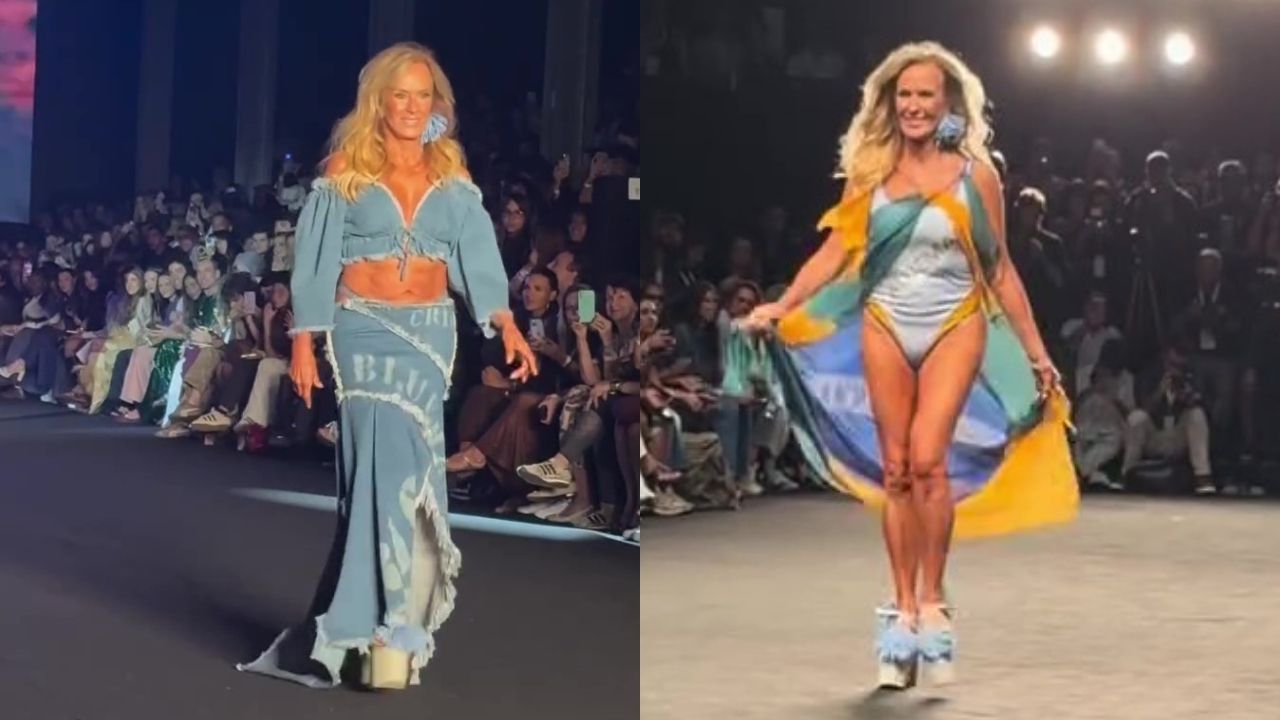 A “Garota de Ipanema”, Helô Pinheiro, 82, foi o grande destaque do Rio Fashion Week, nesta quinta-feira (16), no Píer Mauá. Com um look all jeans, ela representou o retorno da Blue Man às passarelas após dez anos, abrindo o desfile sob aplausos do público.
