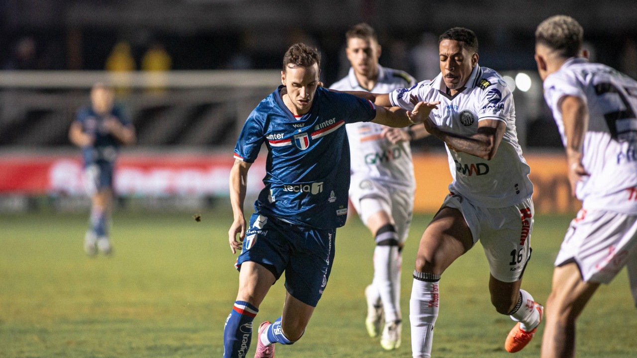 A defesa do Fortaleza se atrapalhou aos 39 minutos e Berto, do Operário, finalizou cruzado para fora.