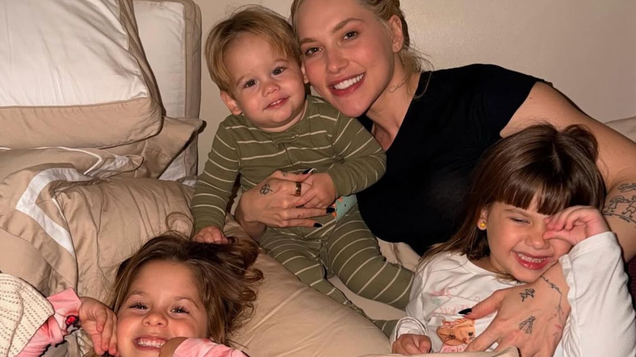 A influenciadora Virginia Fonseca posou ao lado dos três filhos: Maria Alice, de 4 anos, Maria Flor, de 3, e José Leonardo, de 1, e agradeceu o apoio que recebeu do público, em suas redes sociais, nesta terça-feira (28), após o embate com a atriz Luana Piovani.