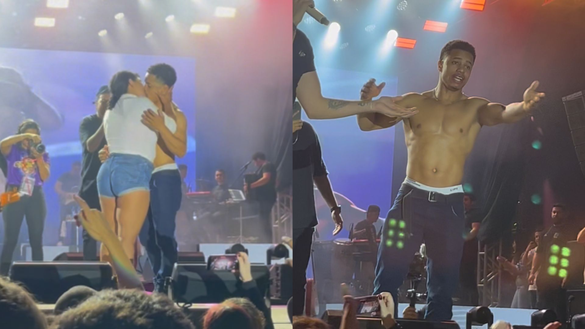 O detalhe: a traída estava na plateia, filmando a cena e avisando que caso ele beijasse a outra mulher, terminaria com ele
