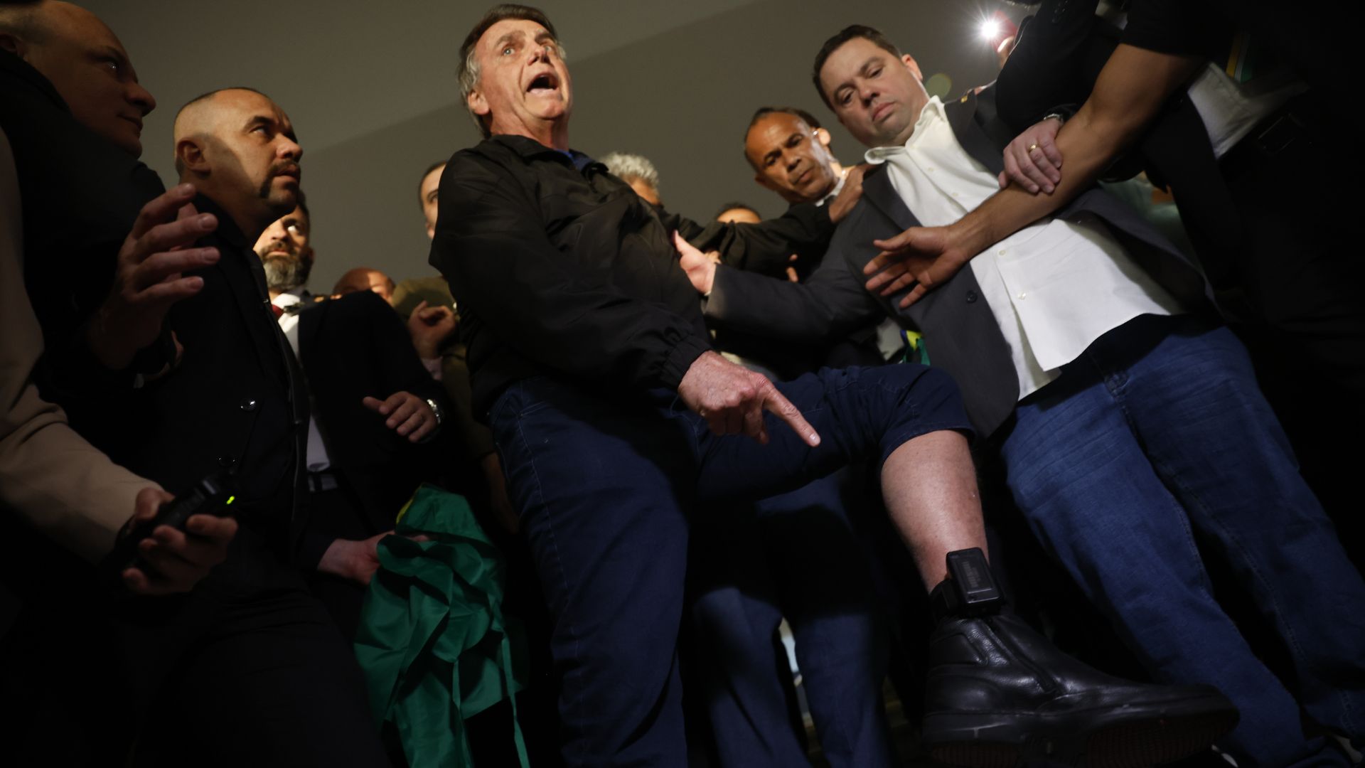 Durante uma visita ao Congresso Nacional, nesta segunda-feira (21), o ex-presidente posou com tornozeleira para fotos ao lado de aliados e apareceu em redes sociais