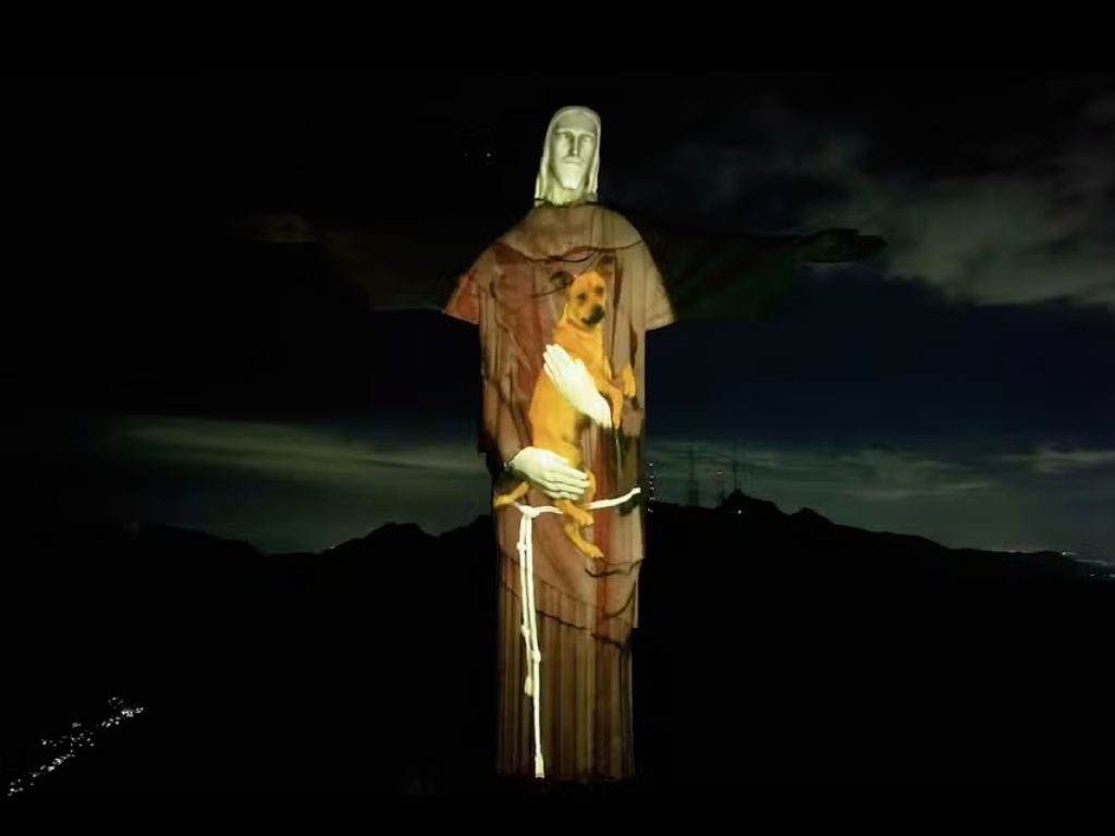 O momento foi registrado e divulgado nas redes oficiais da escultura, e logo viralizou por chamar a atenção com o gesto realizado na projeção