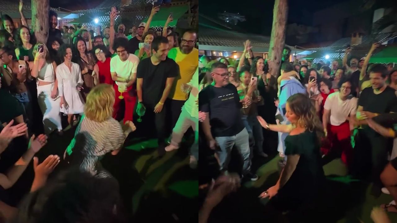 Além de dançar e se jogar no samba, a atriz ainda soltou a voz durante o “momento karaokê”