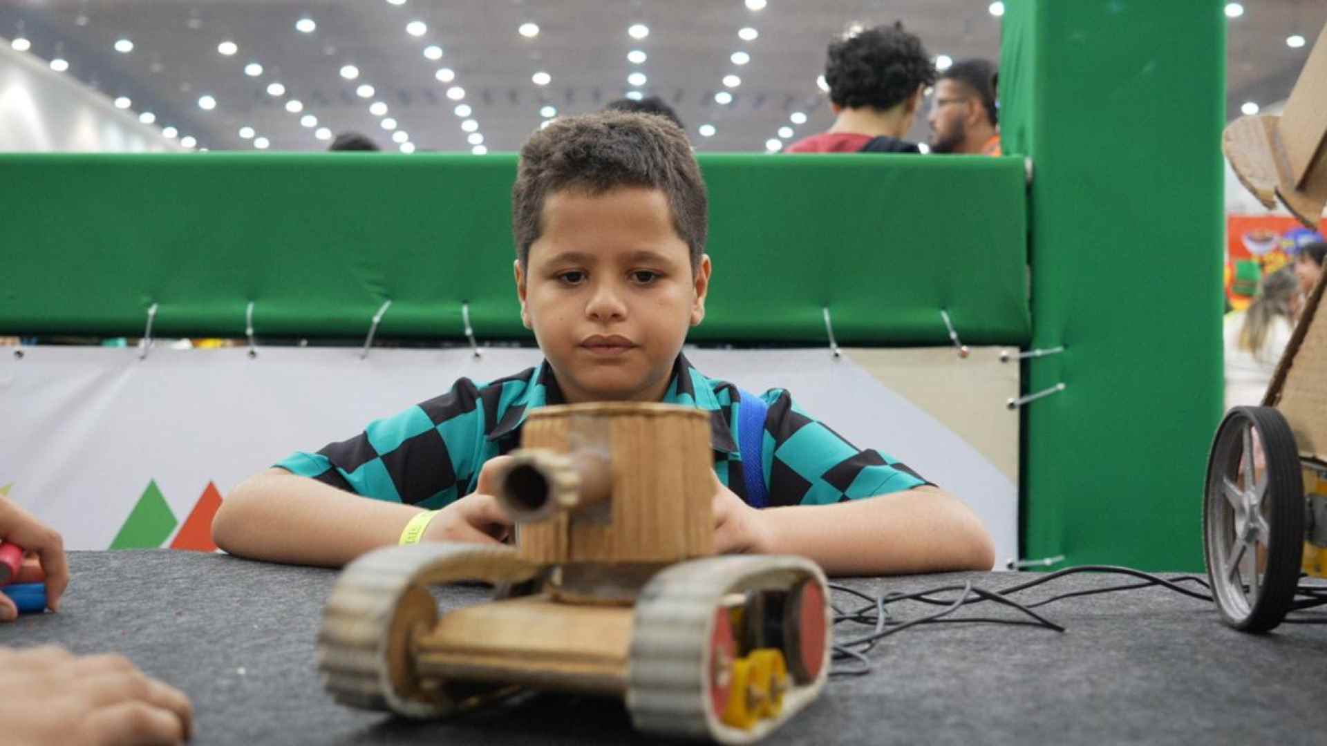 Unindo tecnologia e sustentabilidade, o estande contou com games educativos e ringue de luta de robôs feitos de resíduos eletrônicos