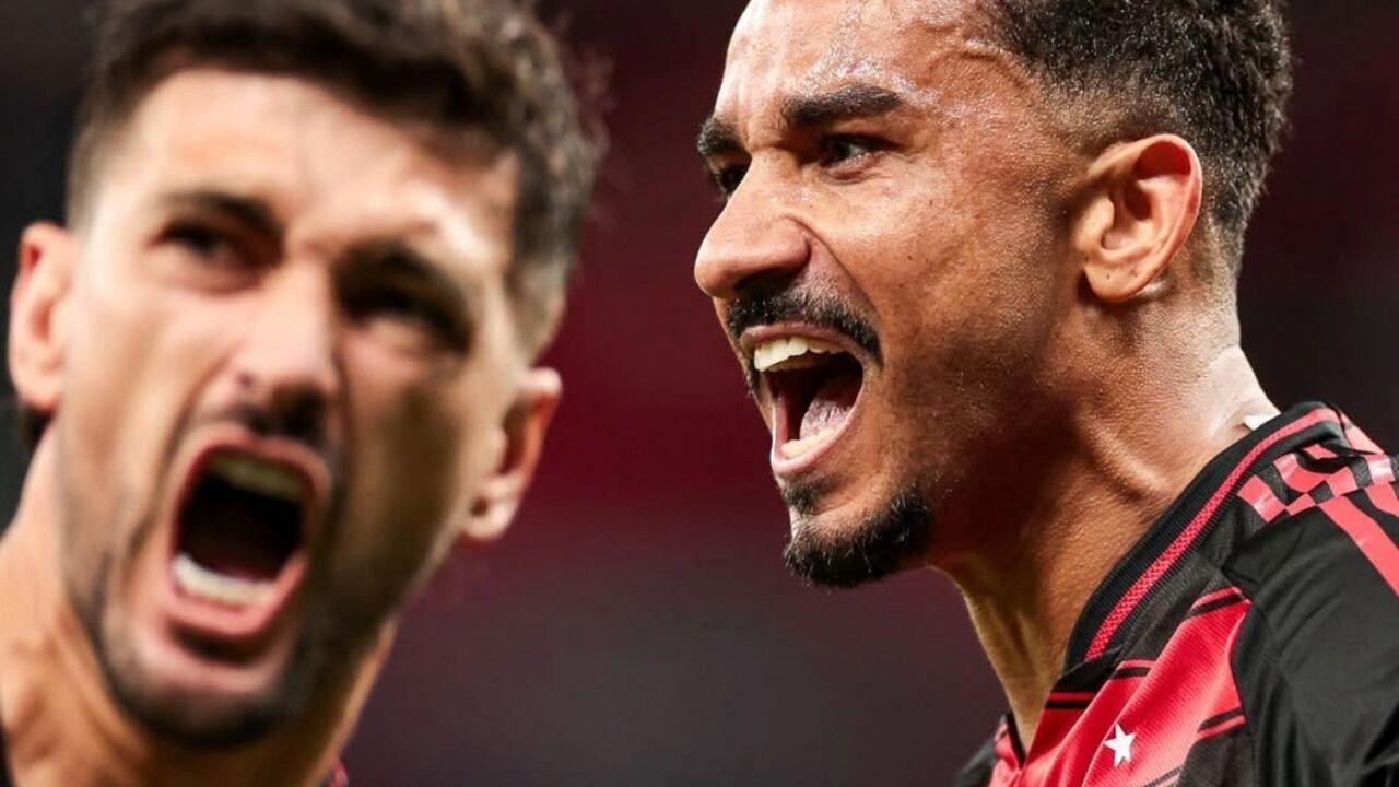 O atacante Everton Cebolinha, agora tricampeão da América, e o goleiro Dyogo Alves puderam celebrar a Glória Eterna com a camisa rubro-negra.