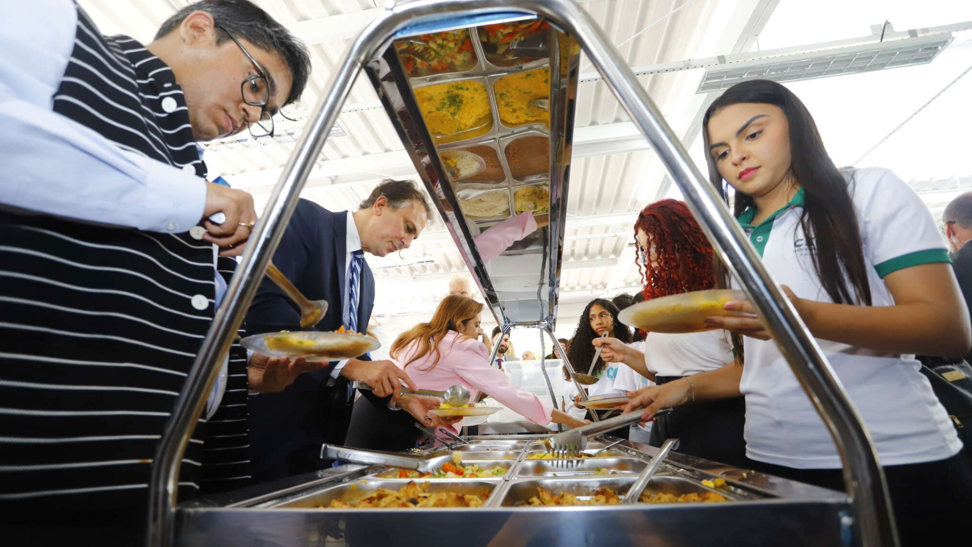 O grupo de 40 alunos, que recebeu a comitiva, foi composto por representantes da escola Jaime Alencar de Oliveira e estudantes do Centro Cearense de Idiomas (CCI) e da Escola Bilíngue Visconde do Rio Branco