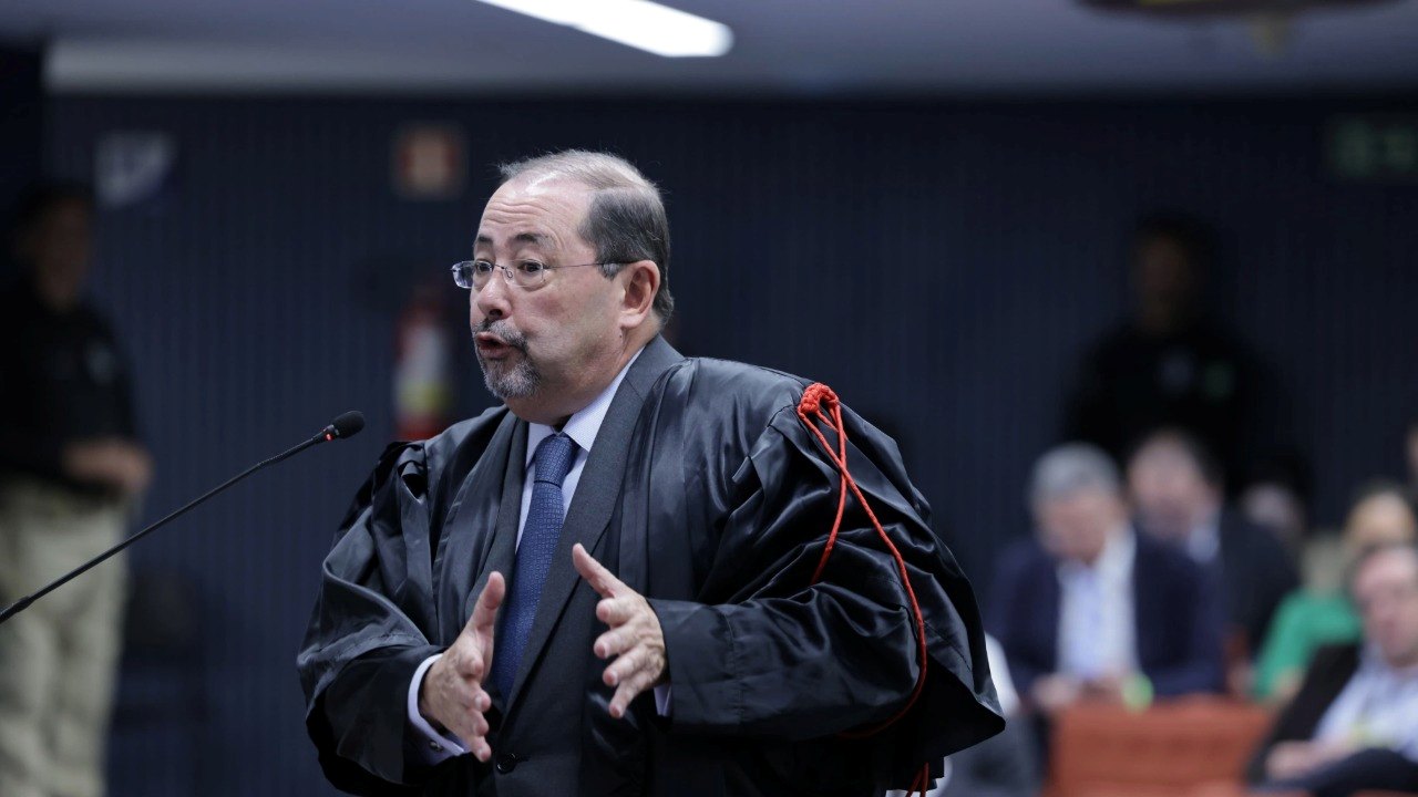 O advogado Matheus Milanez, do ex-ministro Augusto Heleno, começou sua sustentação oral questionando a atuação do ministro do STF Alexandre de Moraes