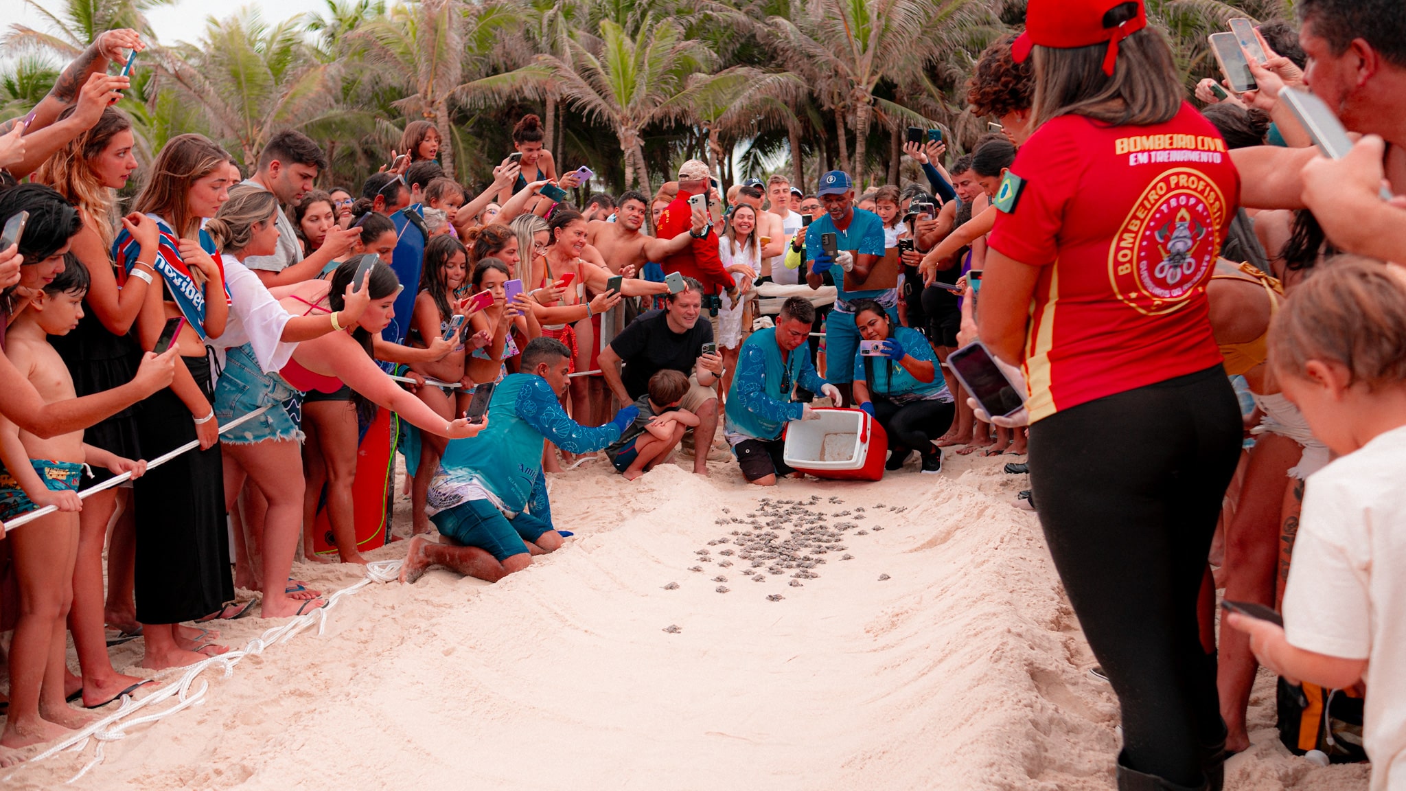Uma equipe de profissionais localizou a desova, protegeu o ninho e auxiliou os pequenos animais no deslocamento até o mar