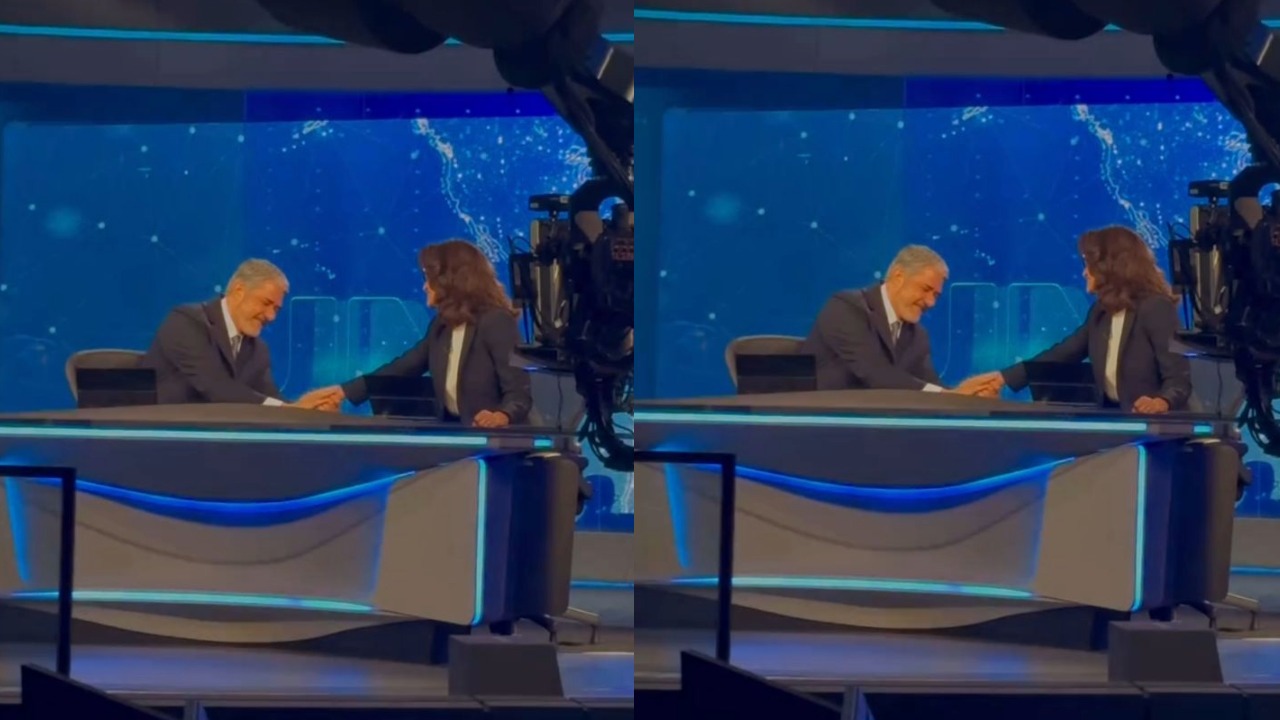 O agora ex-apresentador do noticiário noturno cita o antecessor, Cid Moreira, e pede para abraçar cada um dos colegas presentes no estúdio